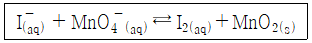아래의 이온반응이 염기성 용액에서 일어날 때, 이온반응식이 올바르게 완결된 것은?