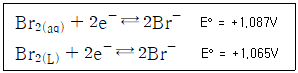 Br2의 표준전극전이는 아래와 같이 상에 따라 다르다. 이와 관련한 설명으로 옳지 않은 것은?