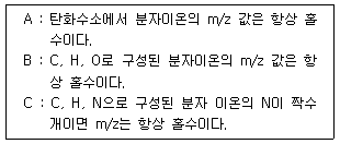 저분해능 질량스펙트럼의 해석에 유용한 정보를 기술하였다. 타당한 것으로 짝지어진 것은?
