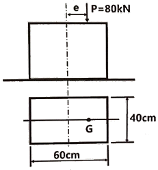그림과 같은 단주에서 편심거리 e에 압축하중 P=80kN이 작용할 때 단면에 인장응력이 생기지 않기 위한 e의 한계는 몇 cm인가? (단, G는 편심 하중이 작용하는 단주 끝단의 평면상 위치를 의미한다.)