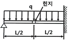 다음과 같이 스팬(span) 중앙에 힌지 (hinge)를 가진 보의 최대 굽힘모멘트는 얼마인가?