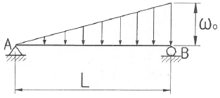 그림과 같이 삼각형으로 분포하는 하중을 받고 있는 단순보에서 지점 A의 반력은 얼마인가?
