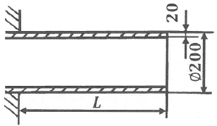 그림과 같이 두께가 20mm, 외경이 200mm인 원관을 고정벽으로부터 수평으로 4m만큼 돌출시켜 물을 방출한다. 원관 내에 물이 가득차서 방출될 때 자유단의 처짐은 약 몇 mm인가? (단, 원관 재료의 세로탄성계수는 200GPa, 비중은 7.8이고 물의 밀도는 1000kg/m3이다.)