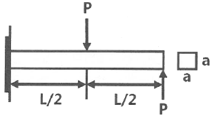그림과 같이 정사각형 단면을 갖는 외팔보에 작용하는 최대 굽힘응력은?