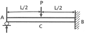 보의 중앙부에 집중하중을 받는 일단고정, 타단지지보에서 A점의 반력은? (단, 보의 굽힘강성 EI는 일정하다.)
