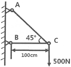 그림과 같은 구조물의 부재 BC에 작용하는 힘은 얼마인가?