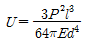길이가 L이고 원형 단면의 직경이 d인 외팔보의 자유단에 하중 P가 가해진다면, 이 외팔보의 전체 탄성에너지는? (단, 재료의 탄성계수는 E이다.)