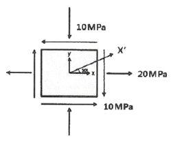 다음과 같은 평면응력상태에서 X축응로부터 반시계방향으로 30°회전 된 X'축 상의 수직응력(σx')은 약 몇 MPa인가?