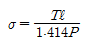 그림의 T형 측면 필릿 용접 이음에서의 응력을 구하는 식은?