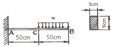 그림과 같은 외팔보가 있다. 보의 굽힘에 대한 허용응력을 80MPa로 하고, 자유단 B로부터 보의 중앙점 C사이에 등분포하중 ω를 작용시킬 때, ω의 허용 최대값은 몇 kN/m인가? (단, 외팔보의 폭×높이는 5cm×9cm이다.)