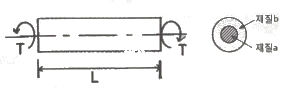 다음 그림과 같이 2가지 재료로 이루어진 길이 L의 환봉이 있다. 이 봉에 비틀림 모멘트 T가 작용할 때 이 환봉은 몇 rad로 비틀림이 발생하는가? (단, 재질 a의 가로탄성계수는 Ga, 재질 a의 극간성모멘트는 Ipa이고, 재질 b의 가로탄성계수는 Gb, 재질 b의 극관성모멘트는 Ipb다.)