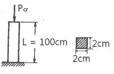 그림과 같이 일단고정 타잔자유단인 기둥의 좌굴에 대한 임계하중(buckling load)은 약 몇 kN인가? (단, 기둥의 세로탄성계수는 300GPa이고 단면(폭×높이)은 2cm×2cm의 정사각형이다. 오일러의 좌굴하중을 적용한다.)