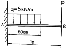 길이 1m인 외팔보가 아래 그림처럼 q=5kN/m의 균일 분포하중과 P=1kN의 집중하중을 받고 있을 때 B점에서의 회전각은 얼마인가? (단 보의 굽힘강성은 EI이다.)
