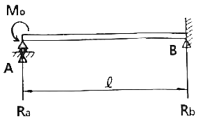 그림과 같은 균일단면을 갖는 부정정보가 단순 지지단에서 모멘트 M0를 받는다. 단순 지지단에서의 반력 Ra는? (단, 굽힘강성은 EI는 일정하고, 자중은 무시한다.)