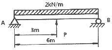 그림과 같은 단순지지보에서 2kN/m의 분포하중이 작용할 경우 중앙의 처짐이 0이 되도록 하기 위한 힘 P의 크기는 몇 kN인가?