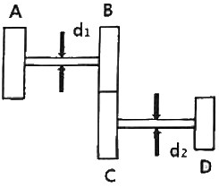 그림과 같은 치차 전동 장치에서 A치차로부터 D 치차로 동력을 전달한다. B와 C 치차의 피치원의 직경의 비가