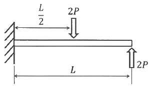 그림과 같이 외팔보에서 하중 2P가 두 군데 각각 작용할 때 이 보에 작용하는 최대굽힘모멘트의 크기는?