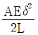 단면적이 A, 탄성계수가 E, 길이가 L 인 막대에 길이방향의 인장하중을 가하여 그 길이가 δ 만큼 늘어났다면, 이 때 저장된 탄성변형 에너지는?
