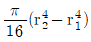 그림과 같은 빗금 친 단면을 갖는 중공축이 있다. 이 단면의 O점에 관한 극단면 2차모멘트는?