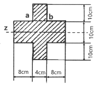 그림과 같은 단면을 가진 외팔보가 있다. 그 단면의 자유단에 전단력 V=40kN이 발생한다면 단면 a-b 위에 발생하는 전단응력은 약 MPa인가?