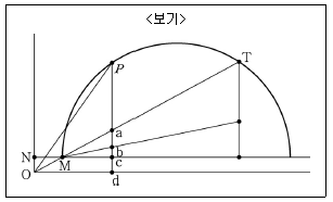 <보기>는 4극, 정격 200[V], 60[Hz]인 3상 유도전동기의 원선도이다. 이 전동기가 P점에서 운전 중일 때 슬립과 동기 와트 각각의 값은? (단, =80mm, =20mm, =12mm, =18mm이며, 전류척도 1A는 10mm이다.)