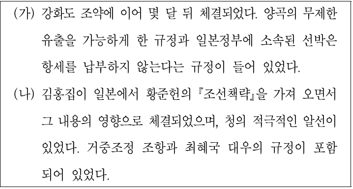 (가), (나)가 설명하는 조약을 옳게 짝 지은 것은?