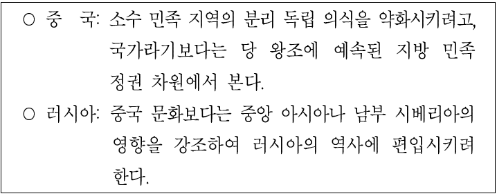 다음은 발해사에 대한 중국과 러시아 입장이다. 한국사의 입장에서 이를 반박하는 증거로 적절한 것은?