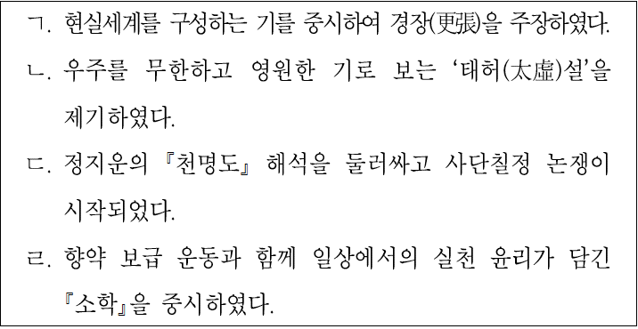 조선 성리학의 학설이나 동향을 시기순으로 바르게 나열한 것은?