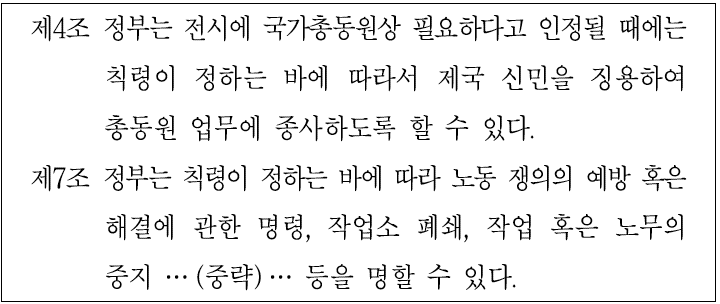 다음의 법률에 근거하여 실시된 식민지 정책으로 옳지 않은 것은?