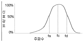 그림과 같은 스펙트럼을 갖는 초음파 탐촉자의 중심 주파수값(fc)은 얼마인가? (단, fa=4,4MHz, fb=9.4MHz이다.)