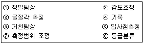 다음에 표시된 경사각탐상시험 절차의 순서가 옳게 나열된 것은?