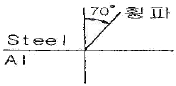 그림과 같은 경우 알루미늄에서의 굴절각은? (단, 알루미늄의 횡파속도 3080m/s, 강의 횡파속도 3230m/s이다.)