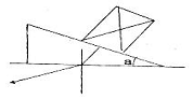 그림과 같이 수직탐촉자를 합성수지 쐐기를 이용하여 45° 경사각 탐촉자를 만들어 강 용접부를 탐상하고자 한다. 그림에서 a 를 약 몇 도로 가공하여야 하는가? (단, 각 매질에서의 음파속도는 합성수지 : 종파 2600m/s, 횡파 1200m/s 강 : 종파 5900m/s, 횡파 3200m/s 이다.)