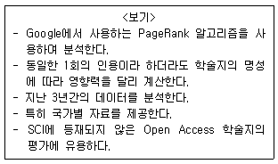 <보기>가 설명하고 있는 학술지 평가지수는?