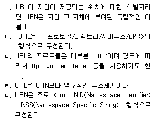 인터넷 환경에서의 디지털 콘텐츠 식별자는 URI(Uniform Resource Identifier)라는 영역에서 다양한 식별자 형태로 만들어지고 있다. URI는 URL과 URN으로 구분된다. <보기>에서 올바르게 설명된 것들만으로 짝지어진 것은?