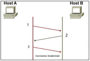 다음 그림은 TCP 기능 중 3Way-Handshake를 설명한 그림이다. Host간 연결 성립(Established)을 위한 Process에서 Host B에서 HOST A에 전달하는 flag bit는 무엇인가?