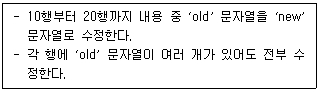 Linux의 VI편집기를 이용하여 파일의 내용을 수정할 때, 다음 내용을 만족하는 치환명령문은 무엇인가?
