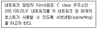 다음 중 아래 지문에 따라 서브네팅할 경우 서브넷 마스크(subnet mask)로 옳은 것은?