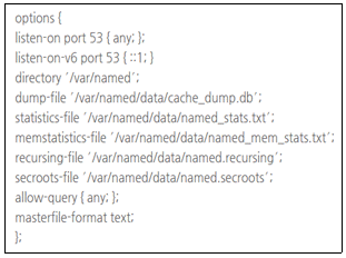 아래 지문의 내용은 Linux의 BIND 시스템 운영을 위한 ′/etc/named.conf′의 option 지시자의 내용이다. 다음 중 옳지 않은 것은?