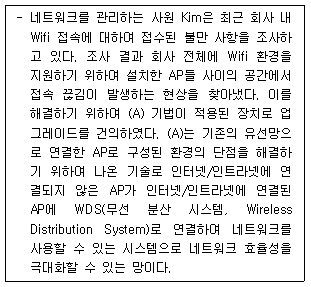 다음은 무선 네트워크에 관한 내용이다. (A) 안에 들어가는 용어 중 옳은 것은?