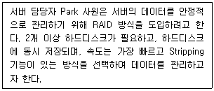 아래 지문에 해당하는 RAID 방식은?