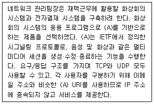 다음은 화상 회의를 하기 위한 기술에 관한 내용이다. ( A ) 안에 들어가는 용어 중 옳은 것은?