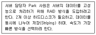 아래 지문에 해당하는 RAID 방식은?