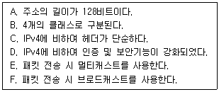 아래 내용에서 IPv6의 일반적인 특징만을 나열한 것은?