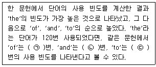 지프의 제1법칙(Zipf's Law)을 적용할 때, ㉠~㉢에 들어갈 숫자를 바르게 연결한 것은? (단, 상수는 120이다) (순서대로 ㉠, ㉡, ㉢)