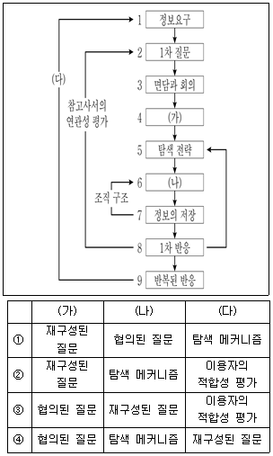 크럼(Crum)의 참고과정모델에서 (가), (나), (다)에 들어갈 말을 순서대로 바르게 나열한 것은?