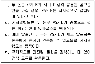 다음 서지결합기법에 대한 설명으로 옳은 것만을 모두 고르면?