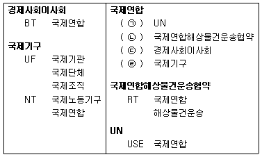 다음 시소러스 사례에서 ㉠~㉣에 들어갈 용어 간 관계기호를 바르게 연결한 것은? (순서대로 ㉠, ㉡, ㉢, ㉣)
