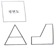 다음과 같이 3각법으로 나타낸 도면에서 정면도와 우측면도를 고려할 때 평면도로 가장 적합한 것은?