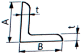 그림과 같은 부등변 ㄱ형강의 치수 표시방법은? (단, 형강의 길이는 L이고, 두께는 t로 동일하다.)